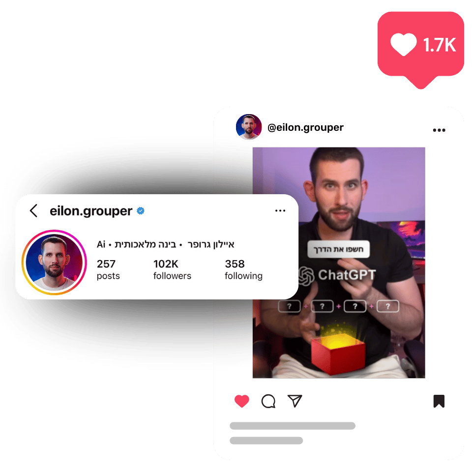 מרגע יציאתו של ChatGPT, ביליתי איתו ימים ולילות מתוך הבנה שעולם הבינה המלאכותית הוא לא פחות מ״המהפכה החדשה של האנושות״. מהר מאוד גם התחלתי ליצור תוכן על Ai במטרה להנגיש אותו לכל אחד.